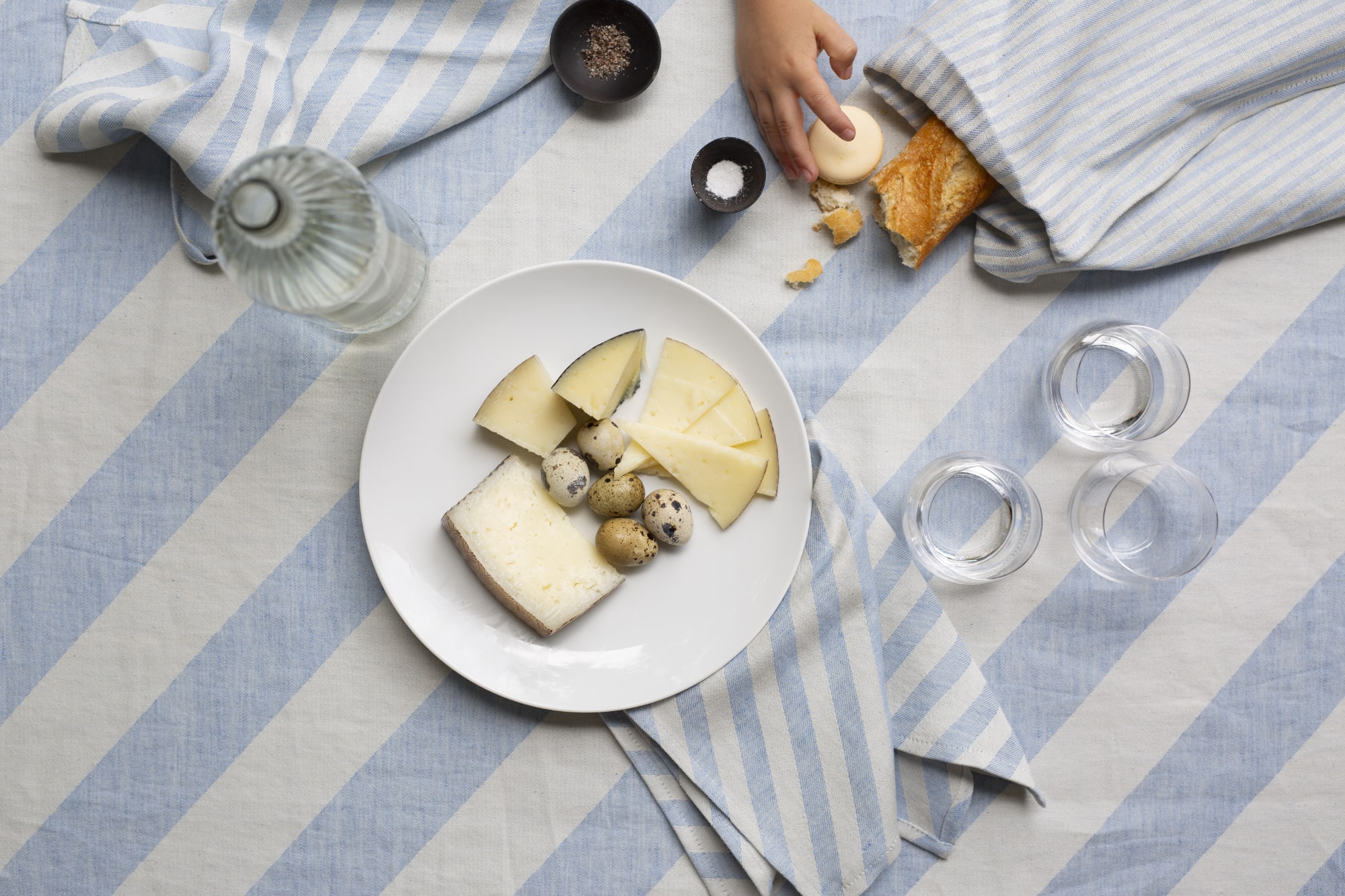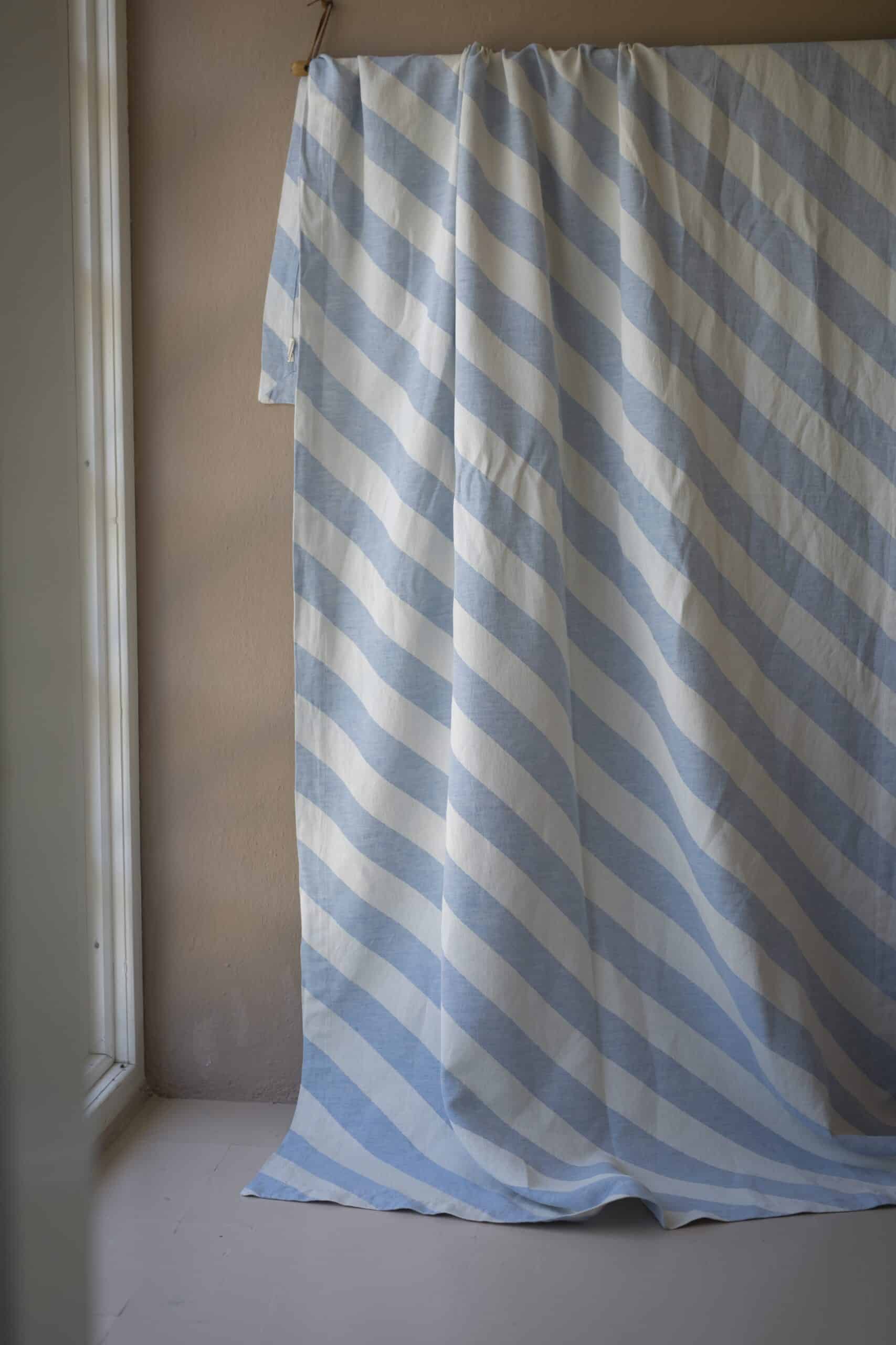 Tischdecke diagonaler Streifen hellblau/natur
